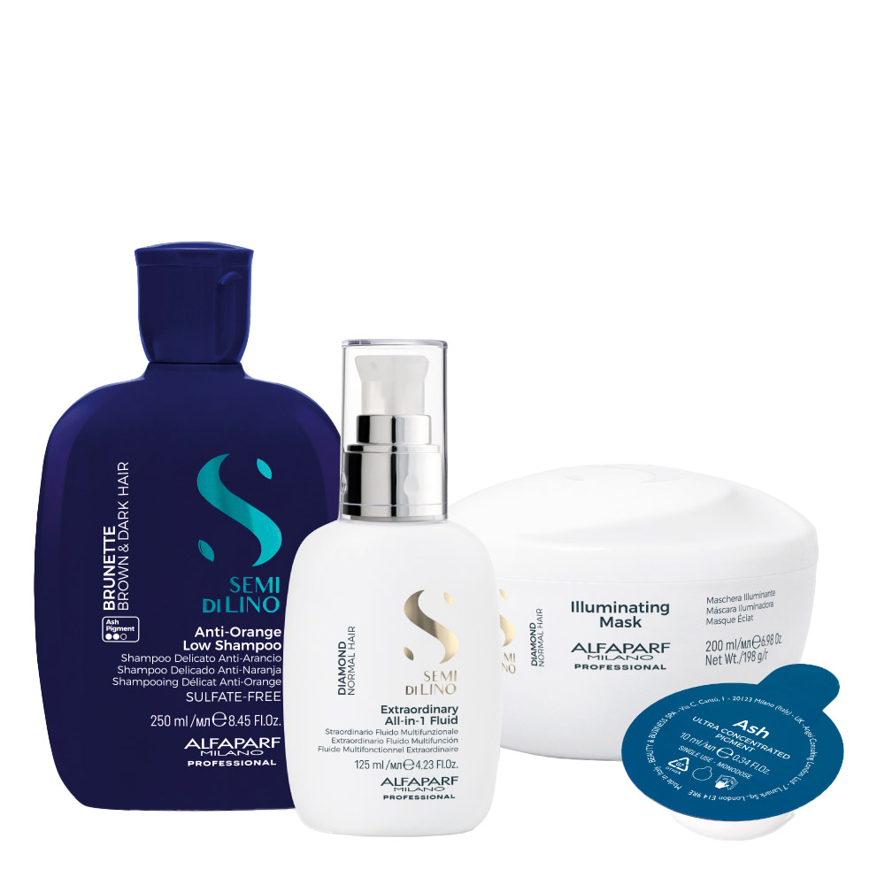 Ash Ultra Concentrated Pigment neutralizes unwanted orange reflections and protects the color from blue light damage. Ultra concentrated blue anti-orange pigment.