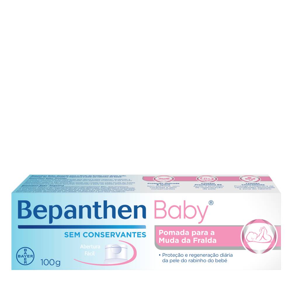 Bepanthen Baby is a double-action diaper changing ointment that protects against redness and regenerates the skin of the baby's bottom, protecting it from diaper rash by forming a transparent layer that lets the skin breathe, helping to protect even the most delicate skin from irritants and friction that can cause redness, guaranteeing care for the skin of the baby's bottom.