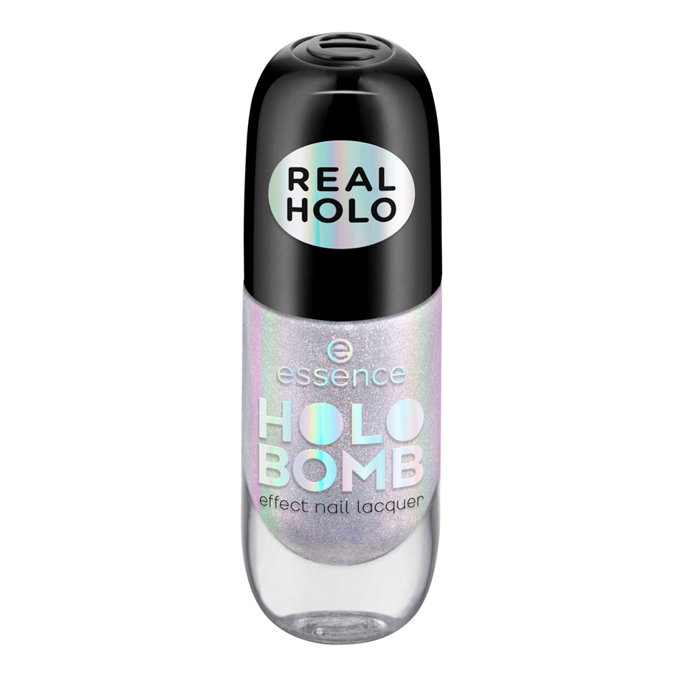 Welcome to the nail polish collection of the future! The Holo Bomb nail polish effect from essence has a unique finish thanks to holographic pigments that shine in all the colours of the rainbow.