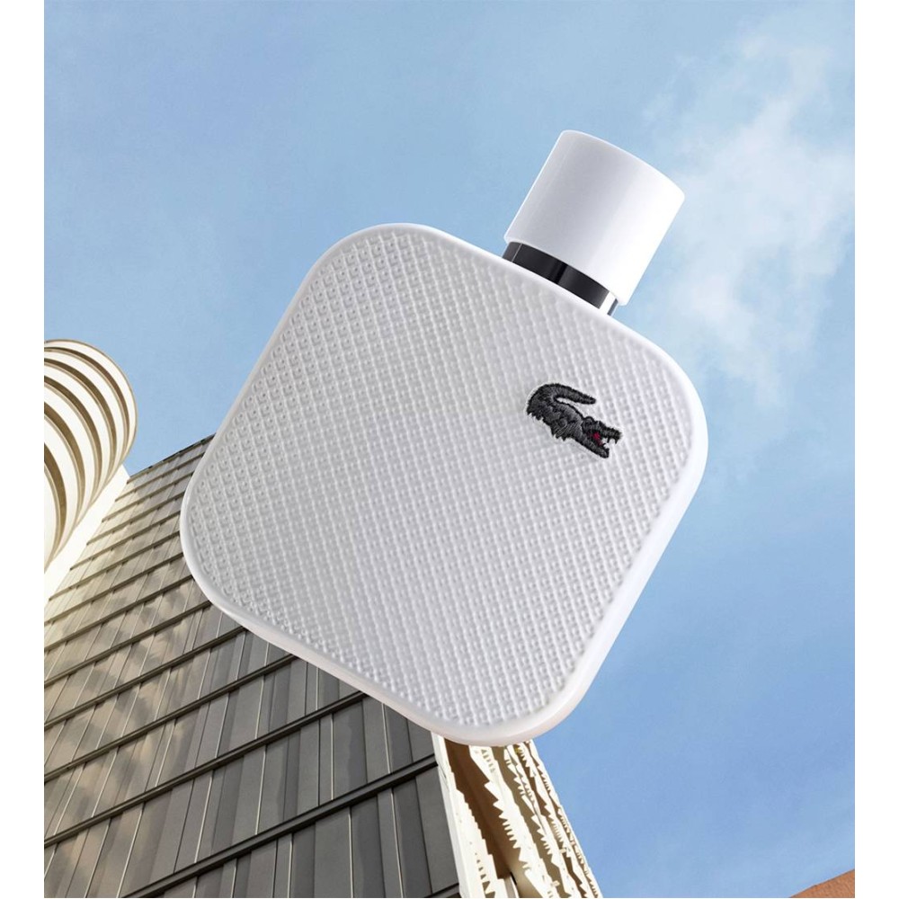 Discover the essence of Lacoste style with Eau de Parfum L.12.12 Blanc. Inspired by the iconic polo, this fragrance for men reveals a safe and dynamic masculinity. Reinvent the rules of the game, moving freely with confidence, thanks to the unexpected freshness of this woody floral fragrance. The acidity of the caviar lime and the freshness of the essence of eucalyptus and lime caviar combine perfectly with the pine chords and the rich tones of cedar, culminating in a feeling of exquisite comfort.