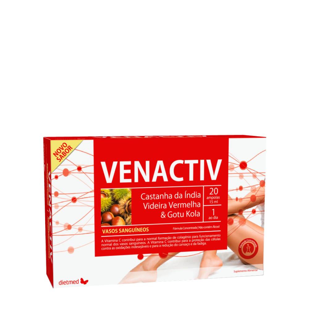 Dietary supplement rich in horse chestnut, gotu kola, ruscus, and red vine. It also includes the action of vitamin C, which contributes to the normal formation of collagen.