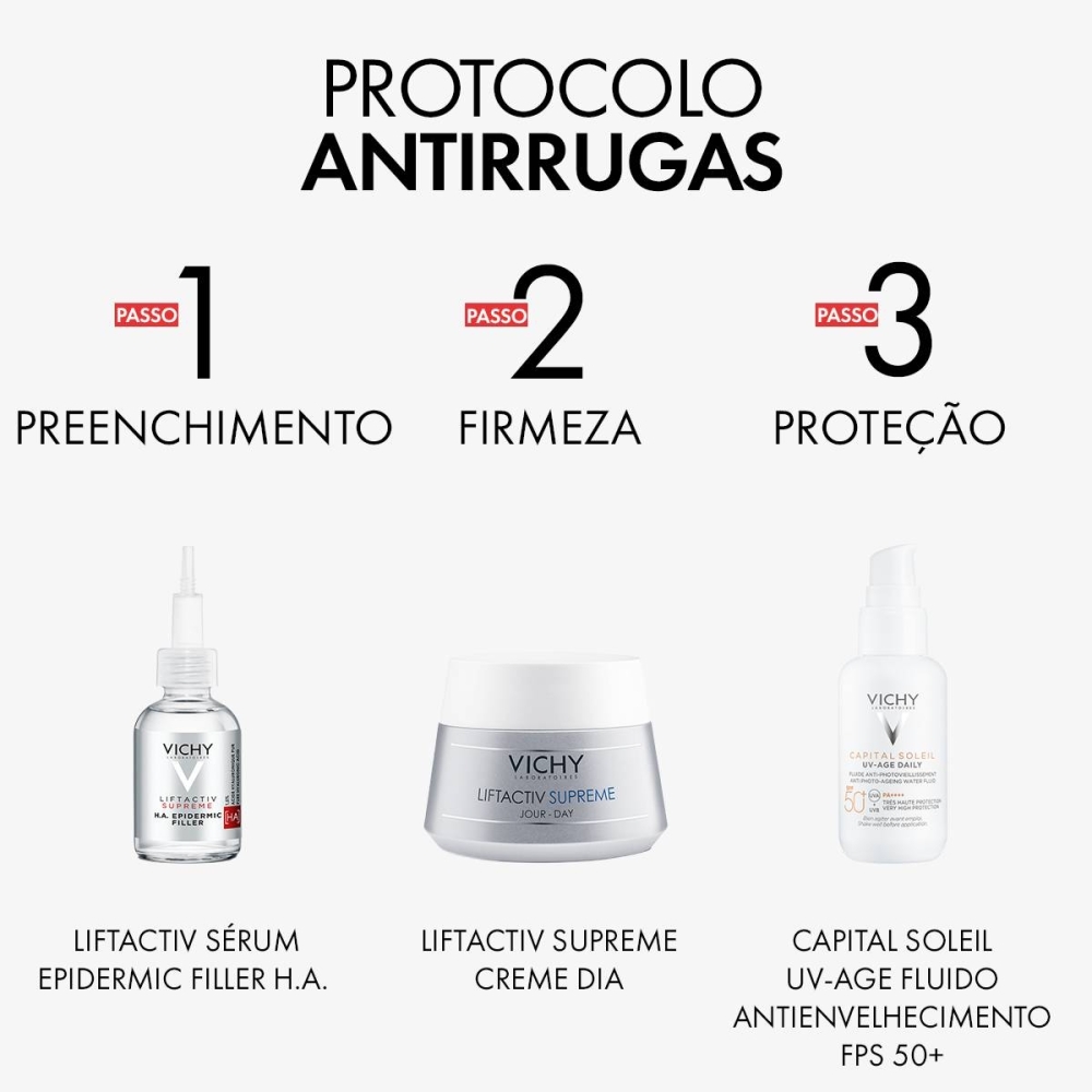 With immediate effect, it brightens the complexion, smoothes wrinkles and imperfections. Skin revitalized until the night, remaining with a youthful and rested appearance. After a month, the daily "lifting effect" of deep wrinkle correction, the skin becomes noticeably firmer.